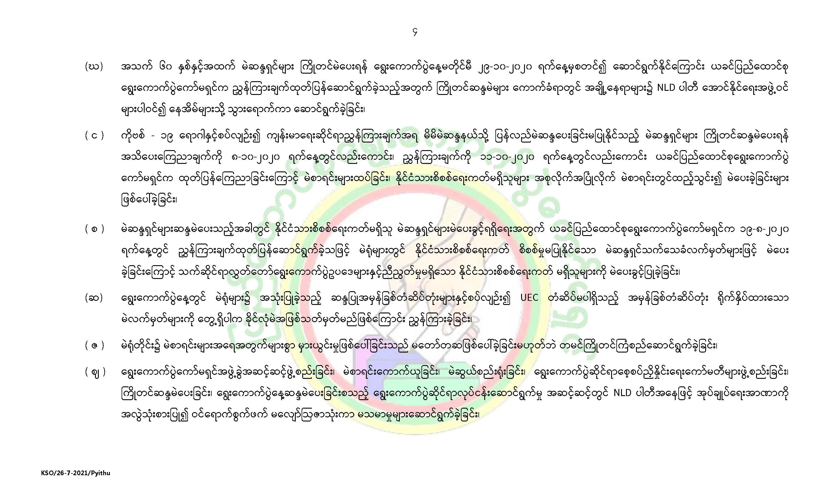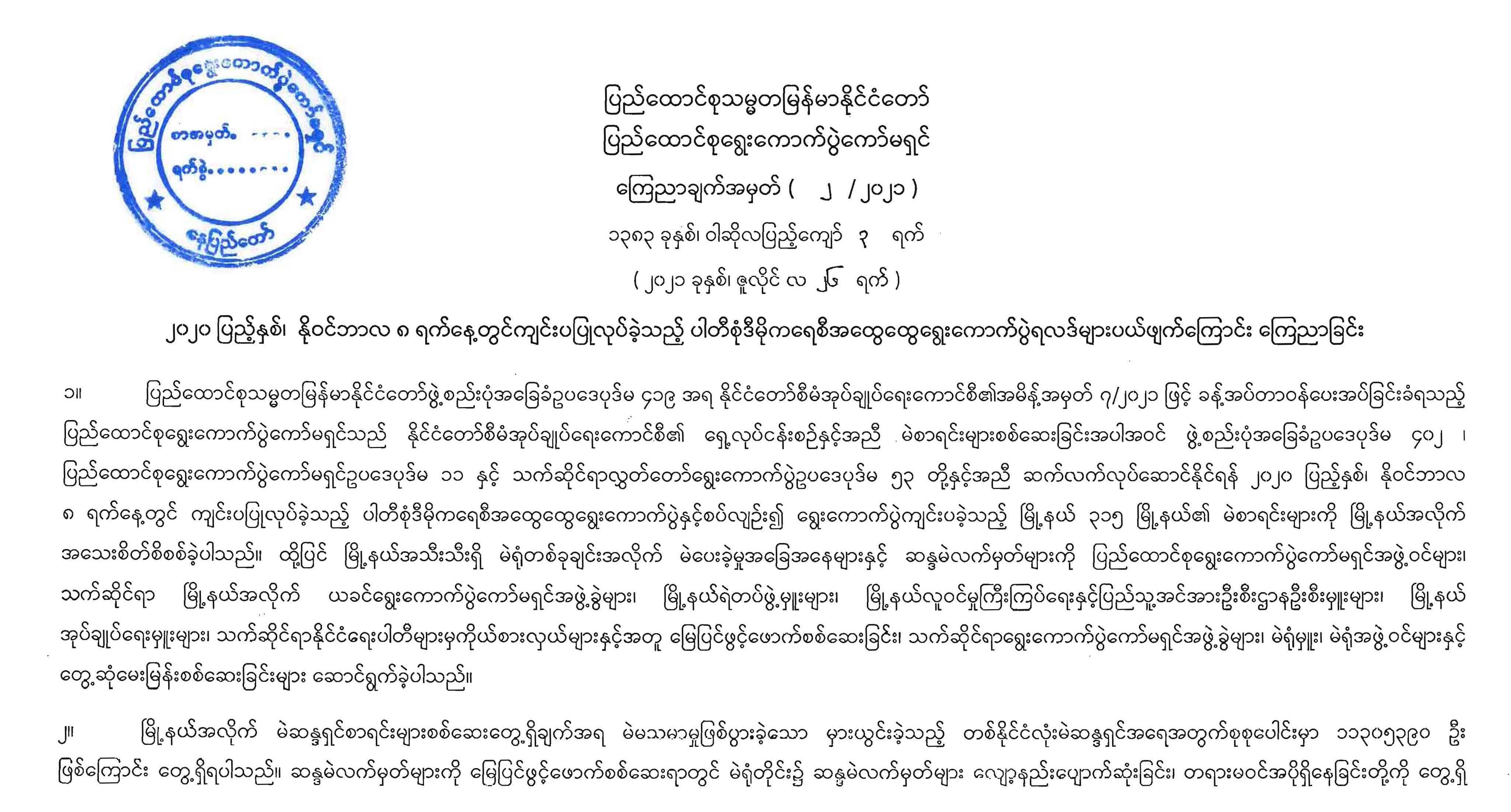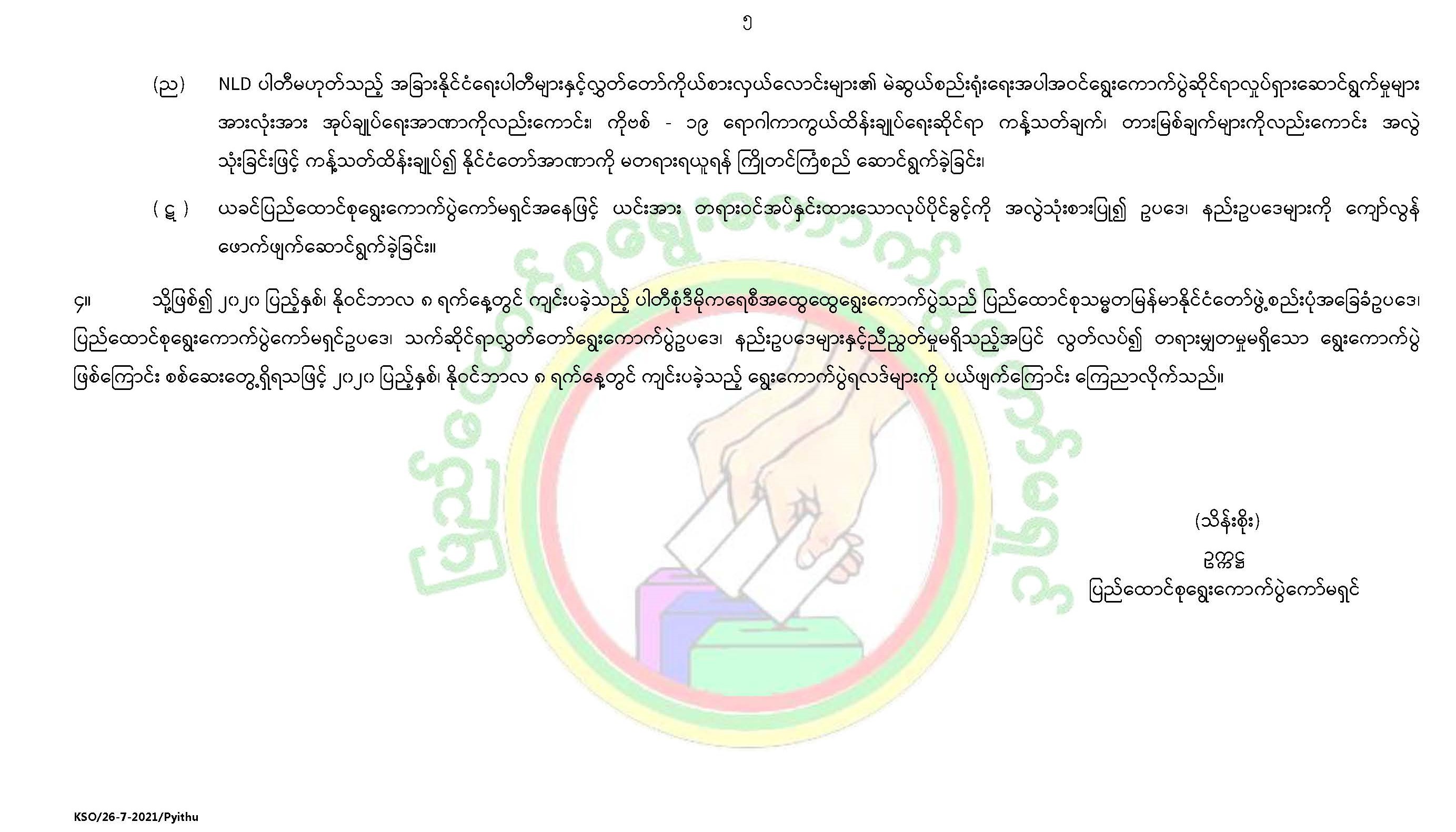 စစ်မှန်၍ စည်းကမ်းပြည့်ဝသော ပါတီစုံဒီမိုကရေစီစနစ် ထွန်းကားရေးအတွက် နိုင်ငံရေးပါတီများကို စနစ်တကျဖွဲ့စည်းပြီး ပါတီစုံဒီမိုကရေစီအထွေထွေရွေးကောက်ပွဲများကို ကျင်းပပြုလုပ်အကောင်အထည်ဖော် ဆောင်ရွက်ပေးရန်